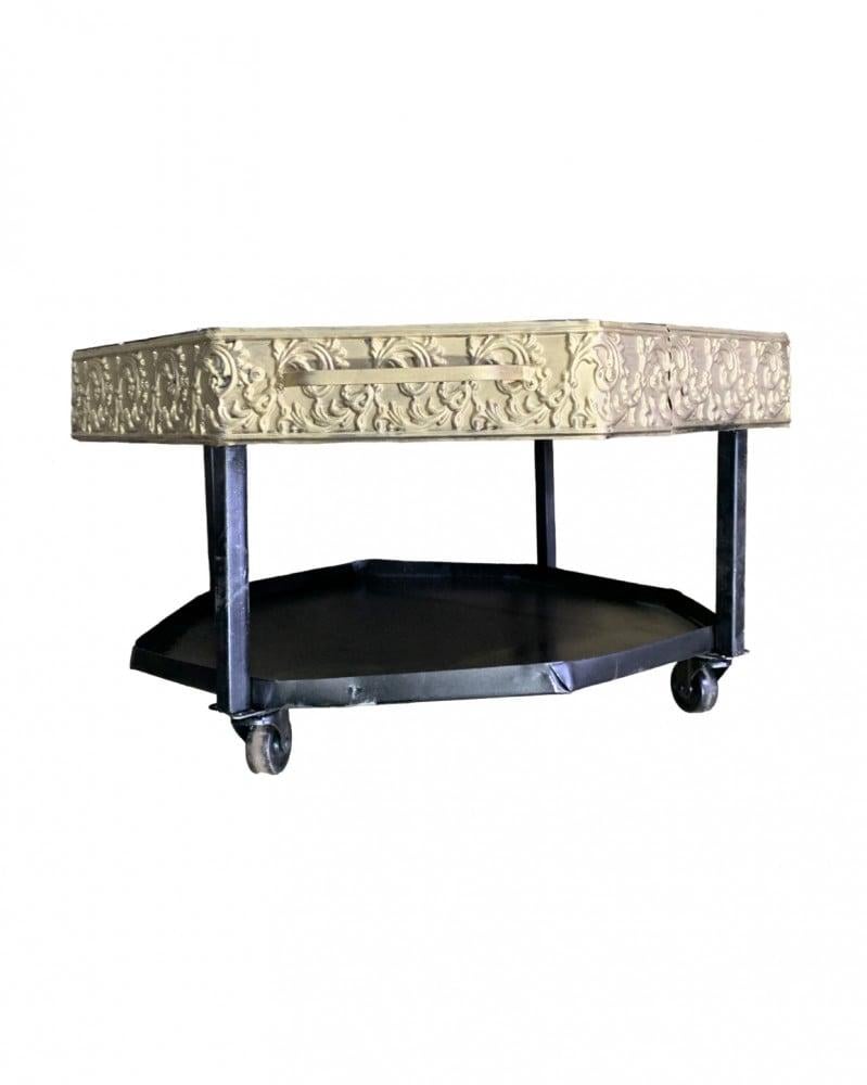 منقل ملكي أنيق مطرز بإطارات ذهبية فاخرة مقاوم للصدأ ويأتي باربع عجلات مع مكبس لإيقاف الحركةالمقاس 52سم*52سم*35سم